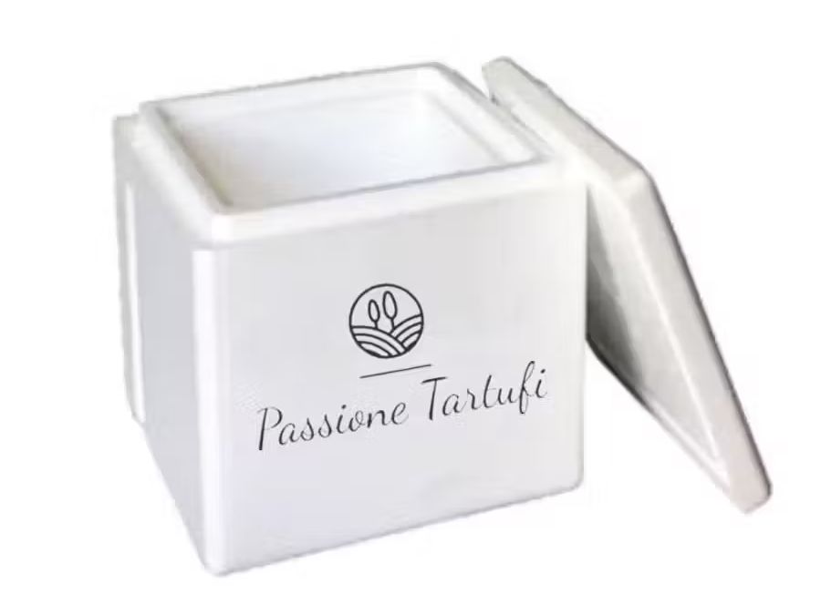 Per il tartufo fresco: Usiamo imballaggi per alimenti in polistirolo di vario spessore a seconda della stagione; al loro interno vi sarà del ghiaccio sintetico per mantenere la corretta temperatura e garantire aroma e qualità di ogni singolo prodotto.